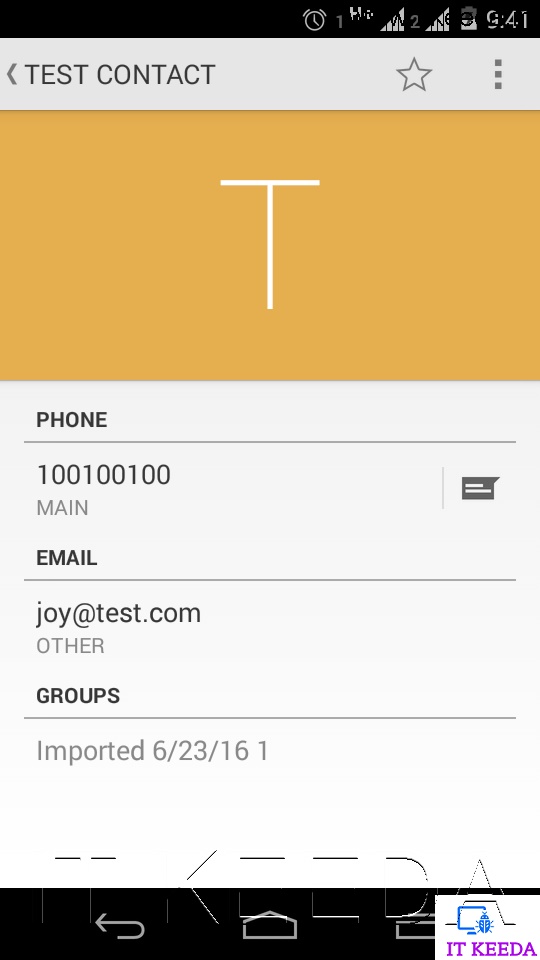 5. After uploading Sync your contacts on your mobile and you see all your contact which is uploaded successfully shown in your contacts list. I upload “TEST CONTACT”